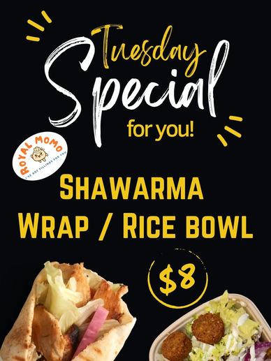 Royal Momo is pleased to present a curated selection of fast food classics, featuring an array of offerings, including dumplings, flavorful shawarma rice bowls, invigorating shawarma wraps, and traditional samosas. To enhance your experience, we invite you to enjoy a cup of soothing chai or treat yourself to one of our exquisite desserts. We strive to be your premier destination for a fulfilling and flavorful culinary experience.